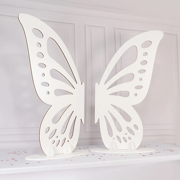 Our magical Butterfly Wings Set is crafted from white wood and stands 4 feet tall. This backdrop makes a striking first impression with its beautifully crafted butterfly cutout design. Perfect for a wide range of events—from weddings and bridal showers to birthday parties and photo booths—this self-standing backdrop creates the ideal setting for memorable photos. Its delicate, yet modern aesthetic seamlessly blends into both outdoor and indoor venues, offering a unique way to frame your event’s most special moments