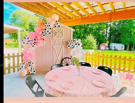Looking to add a touch of charm to your next event? Look no further! At Premier Party Props we specialize in party prop design, rentals and balloon designs that will make your celebration truly unforgettable. Introducing our star attraction: the Pink Barn! Crafted with love from high-quality wood, this whimsical masterpiece stands tall at 8 ft and spans 8 ft wide. Hand-painted in a soft pink hue with cream trim, the Pink Barn is a delightful addition to any occasion. What sets our Pink Barn apart is its versatility. Designed to separate down the middle, it can be easily transported and set up at any venue. And the best part? We offer personalized options, allowing you to proudly display any name or message on the barn itself. Whether you're planning a birthday bash, baby shower, or any other special event, our Pink Barn is sure to create a picture-perfect backdrop that will leave your guests amazed. Get in touch with us today to book the Pink Barn for your next celebration! We can't wait to help you bring your vision to life!